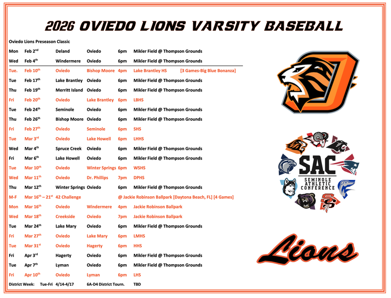 Oviedo Lions Tickets click above